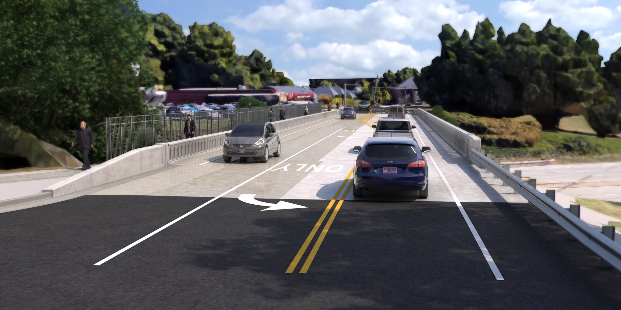 The project will widen the bridge to add an additional vehicle lane and create a protected pedestrian facility separated from traffic by a barrier wall.