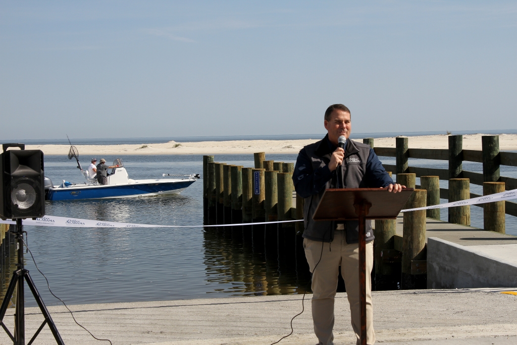 Chris Blankenship, Commissioner of the Alabama Department of Conservation and Natural Resources (ADCNR), had a dual purpose for being at the ribbon cutting. He presided over the ceremony and later returned to launch his boat at the ramp for an afternoon of family fishing.