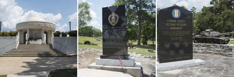 The memorial, near Noccalula Falls Park, honors soldiers, sailors, airmen and Marines from Etowah County who “made the supreme sacrifice” to “remind us and future generations that the price of liberty is often high.”