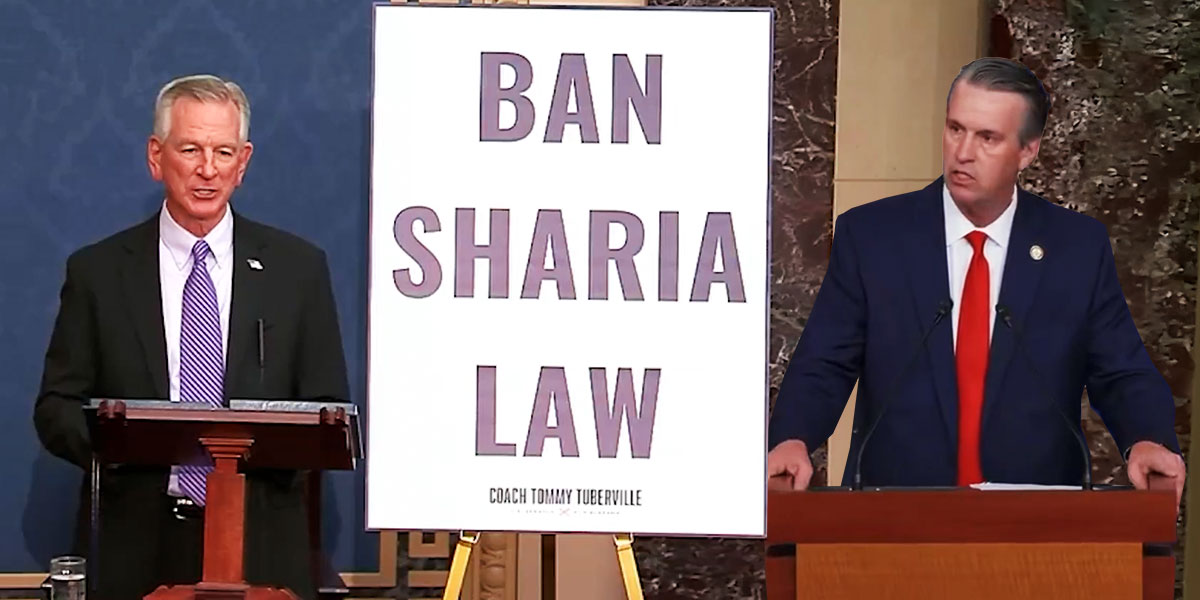 Tuberville has introduced two bills to root out the evils of Sharia Law from this country, the No Sharia Act and the Preserving a Sharia Free America Act.