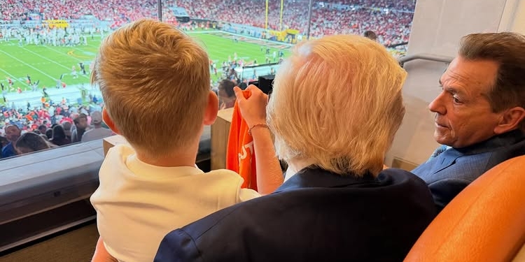In the background, a crowd outside the building can be heard chanting in support of the football team.